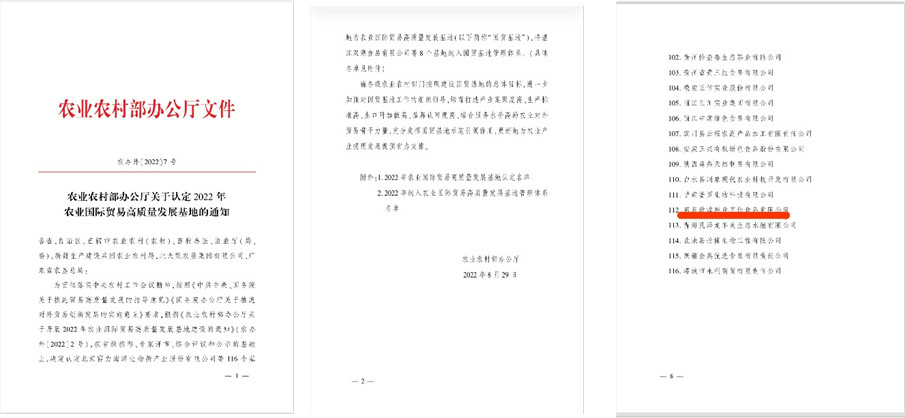酒泉敦煌種業(yè)百佳食品有限公司被農(nóng)業(yè)農(nóng)村部認(rèn)定為2022年農(nóng)業(yè)國際貿(mào)易高質(zhì)量發(fā)展基地